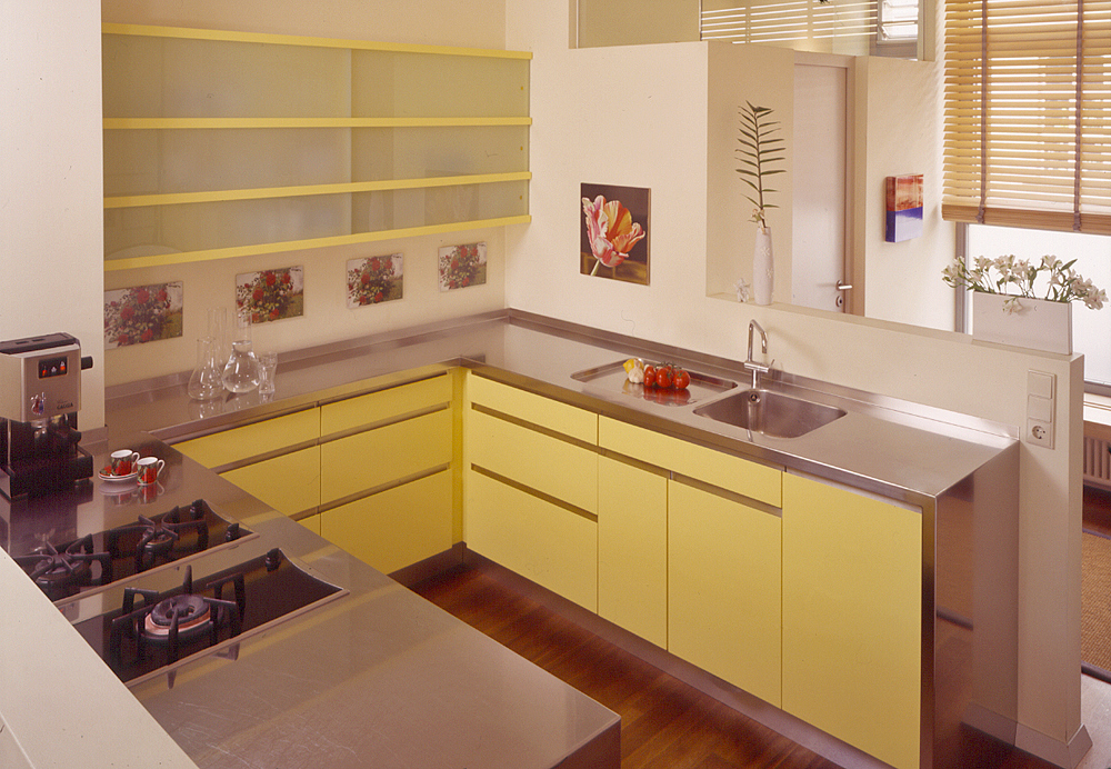 Küche mit Edelstahl-Arbeitsplatte