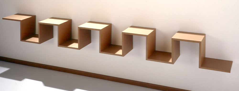 Immer an der Wand lang: Mäander-Regal aus MDF, naturlackiert.