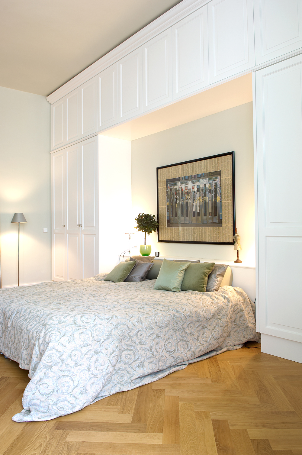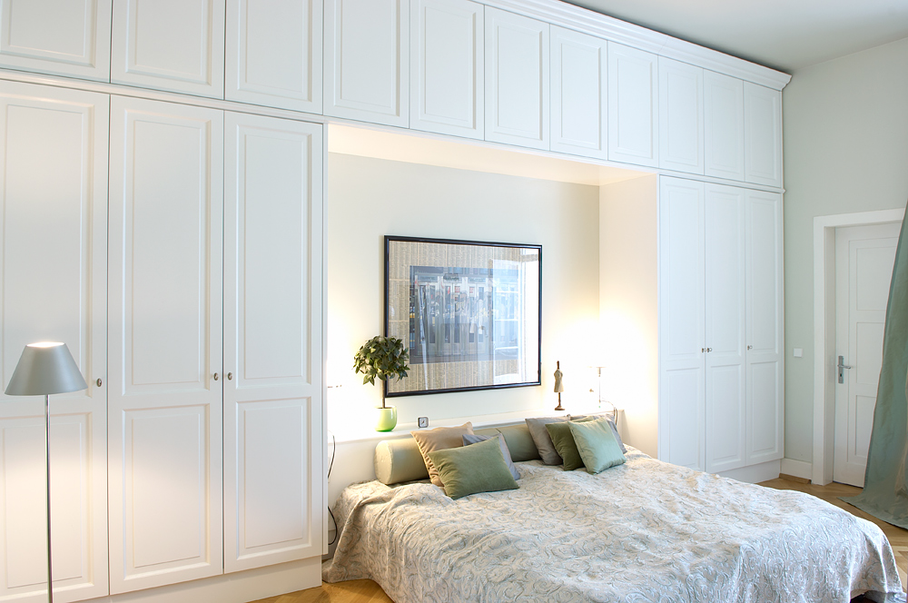 Bett mit einem Schrank umbaut