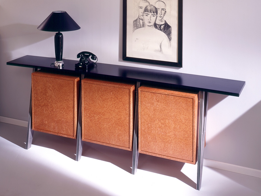 Am besten oben ohne, so kommt die Kombination von Vogelaugenahorn, Edelstahl und schwarz lackierter MDF am besten raus.