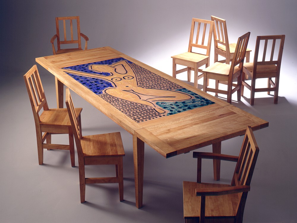 Kunst genießen: Mit Matisse an einem Tisch sitzen. Wenn das nicht ein köstliches Erlebnis ist. Tisch und Stühle sind aus Erle. Keramik von Peter Thumm. www.peter-thumm.com