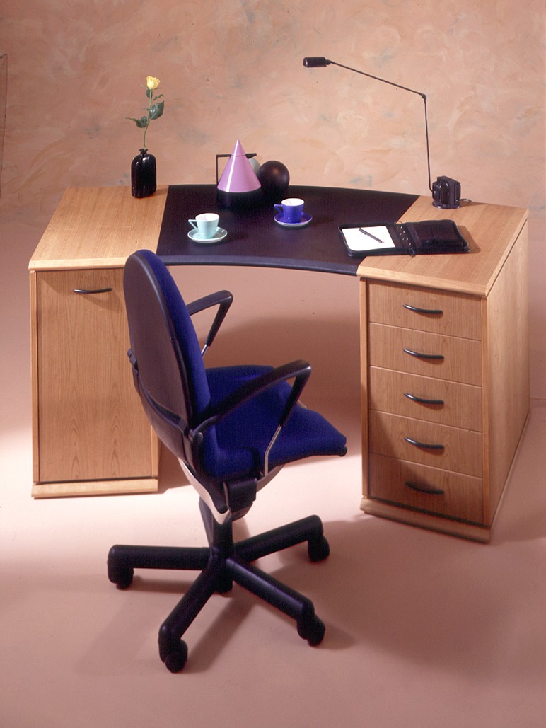 Ab in die Schublade: Schreibtisch mit vielen Ablagemöglichkeiten aus Kirsche und Leder.